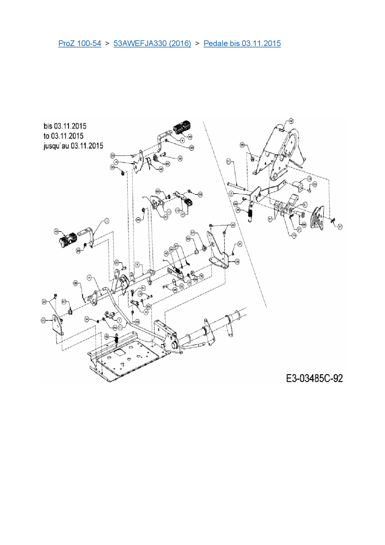 Ersatzteile für Zero Turn Cub Cadet ProZ 100-54 aus der Zeichnung Pedale bis 03.11.2015: