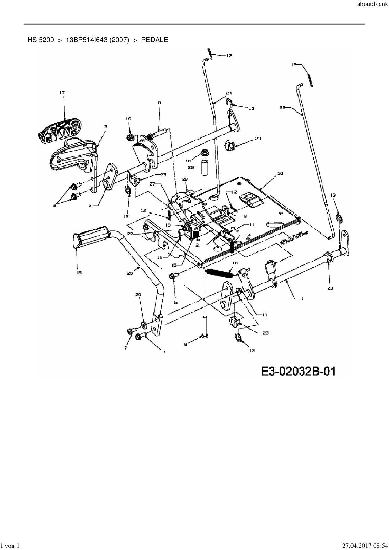 Ersatzteile für Rasentraktor Yard-Man HS 5200 aus der Zeichnung Pedale:
