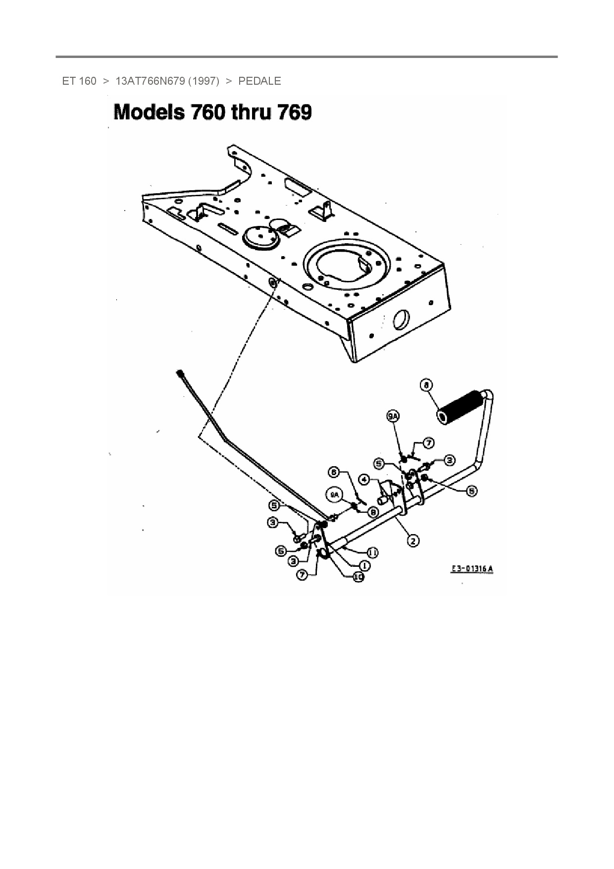 Ersatzteile für Rasentraktor White ET 160 aus der Zeichnung Pedale: