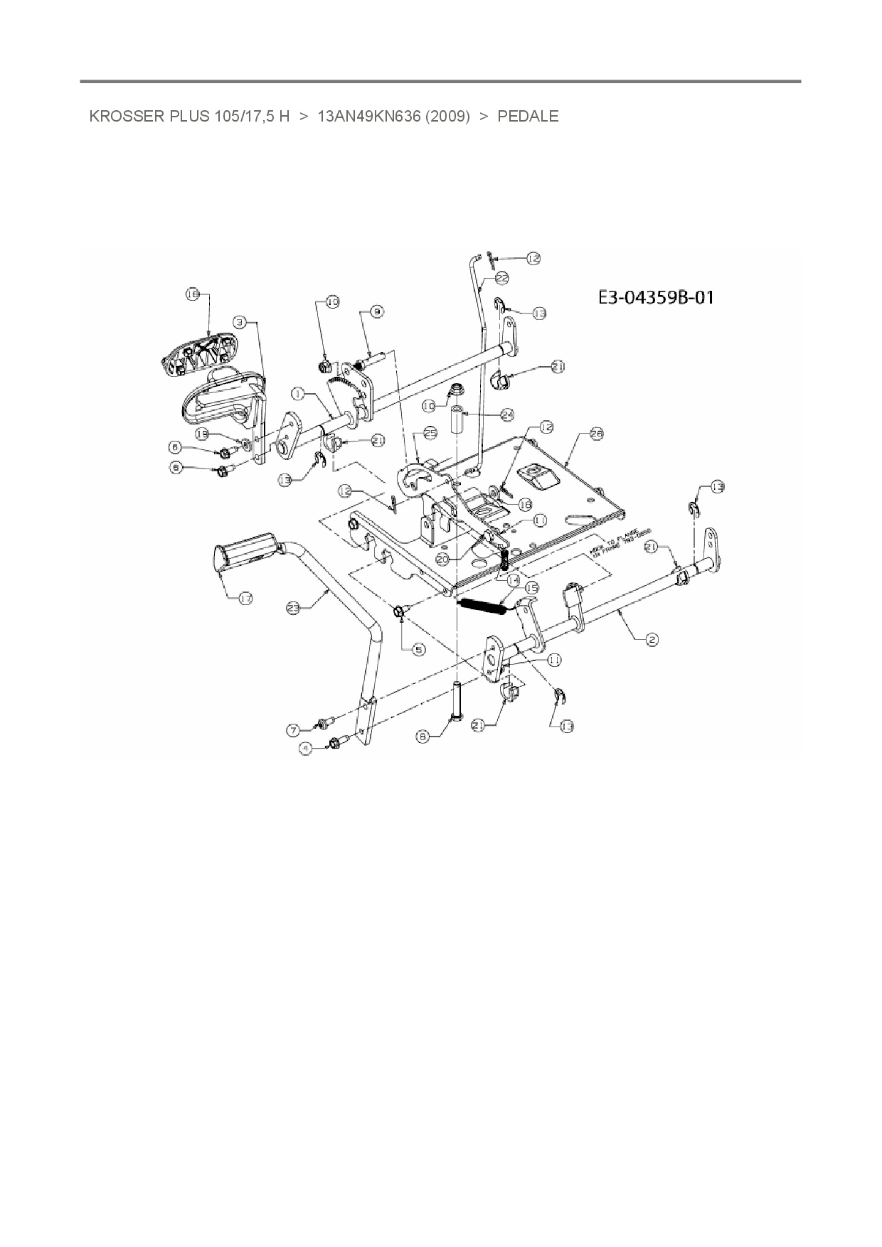 Ersatzteile für Rasentraktor Oleo-Mac Krosser Plus 105/17,5 H aus der Zeichnung Pedale: