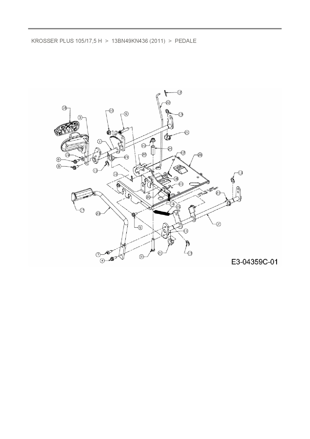 Ersatzteile für Rasentraktor Oleo-Mac Krosser Plus 105/17,5 H aus der Zeichnung Pedale: