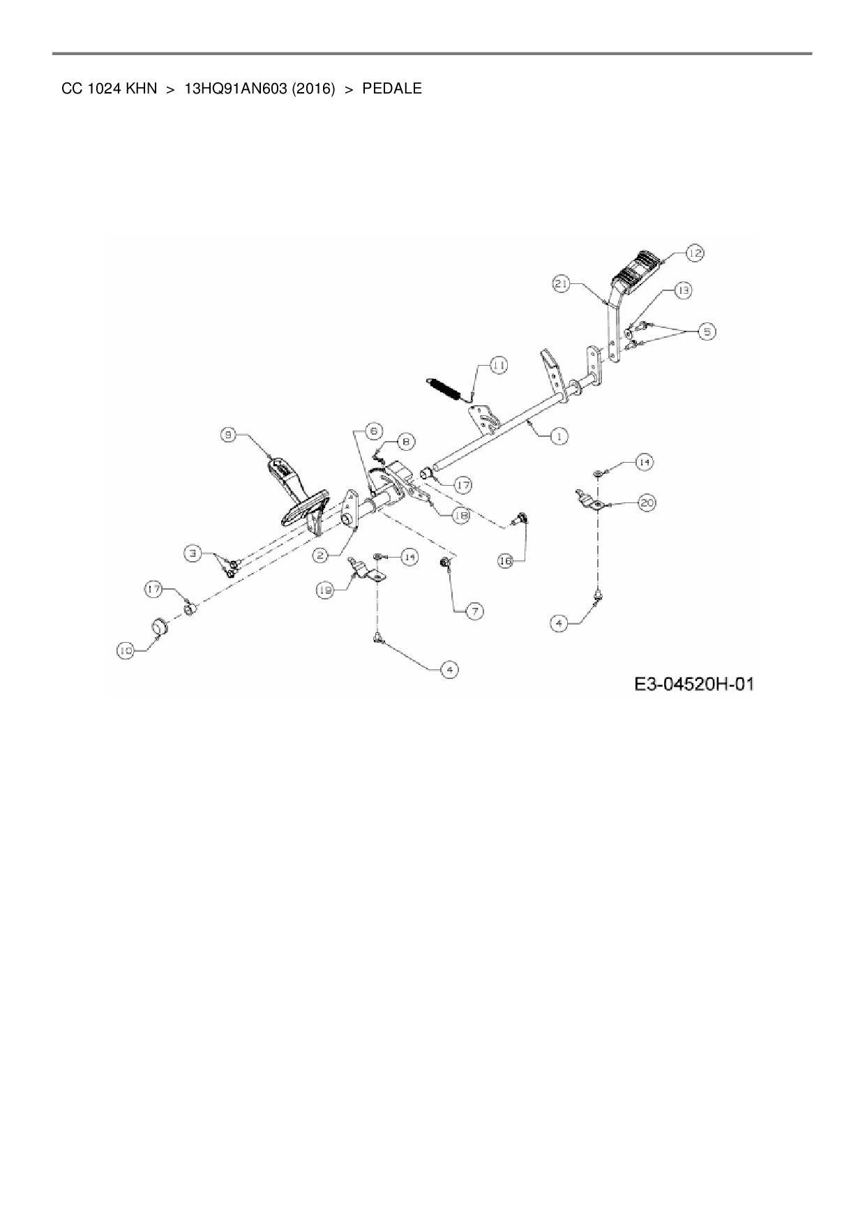 Ersatzteile für Rasentraktor Cub Cadet CC 1024 KHN aus der Zeichnung Pedale: