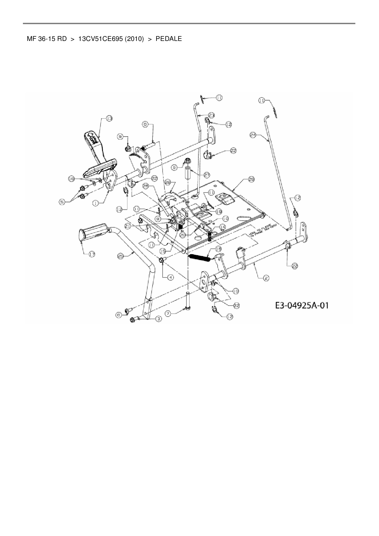 Ersatzteile für Rasentraktor Massey Ferguson MF 36-15 RD aus der Zeichnung Pedale: