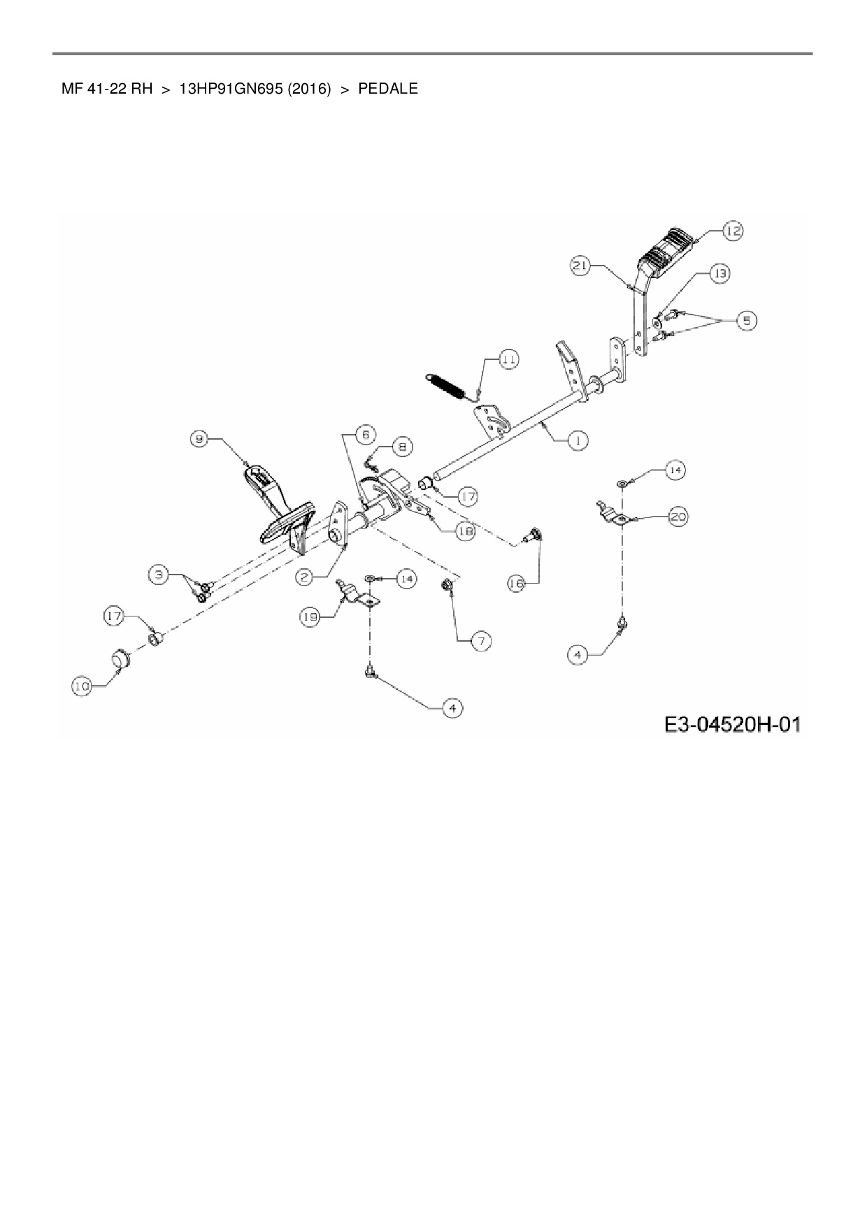 Ersatzteile für Rasentraktor Massey Ferguson MF 41-22 RH aus der Zeichnung Pedale: