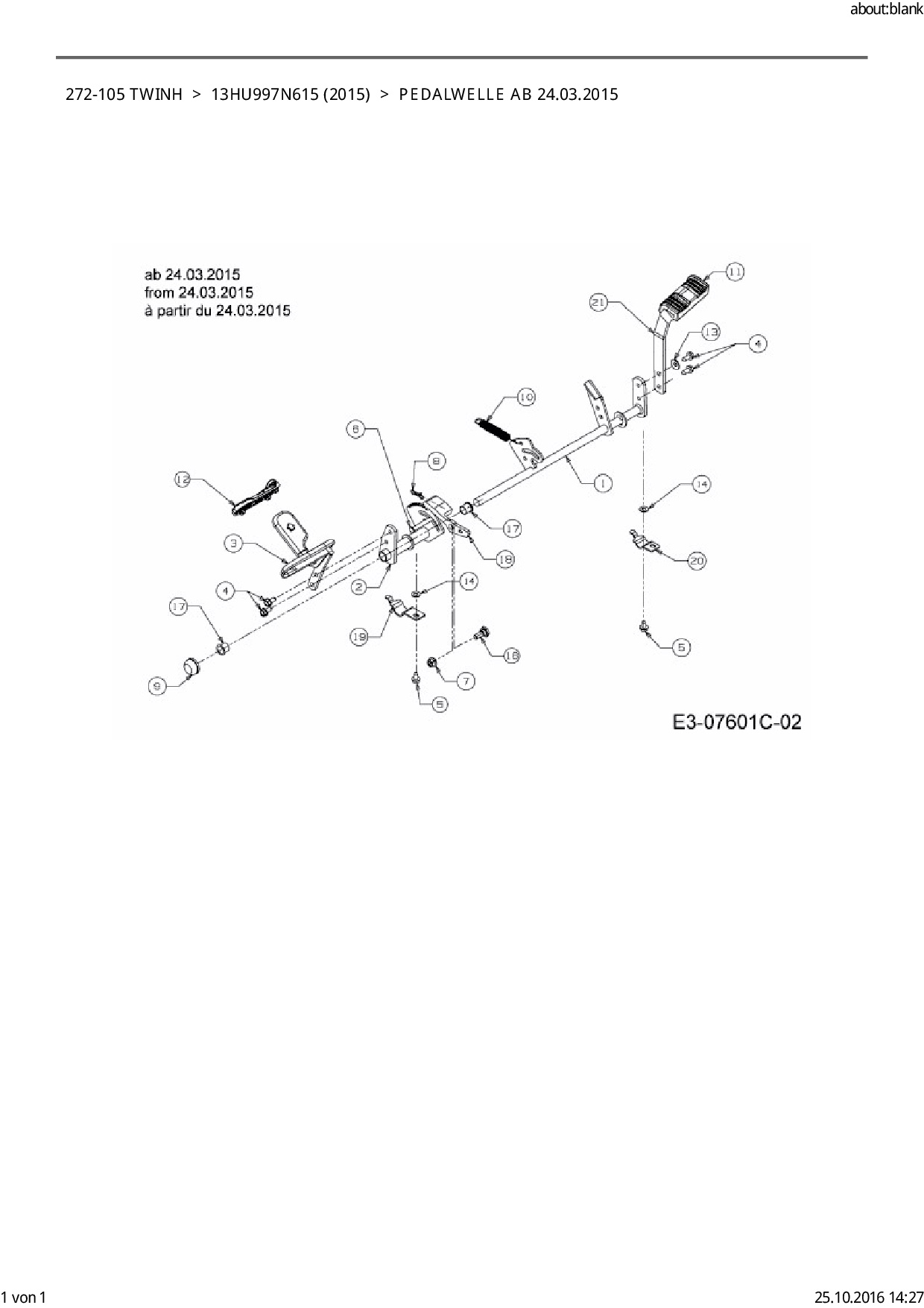 Ersatzteile für Rasentraktor Black Edition 272-105 TwinH aus der Zeichnung Pedalwelle ab 24.03.2015: