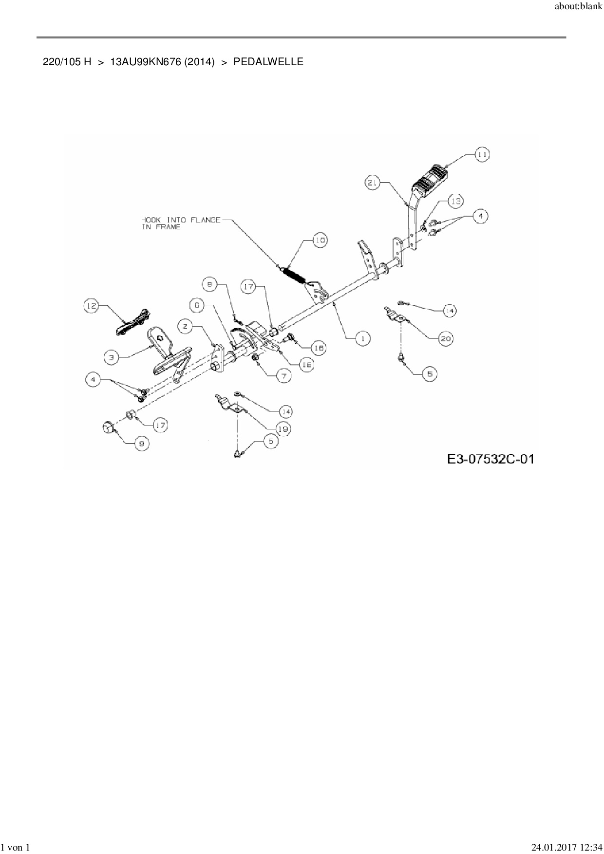Ersatzteile für Rasentraktor MTD 220/105 H aus der Zeichnung Pedalwelle: