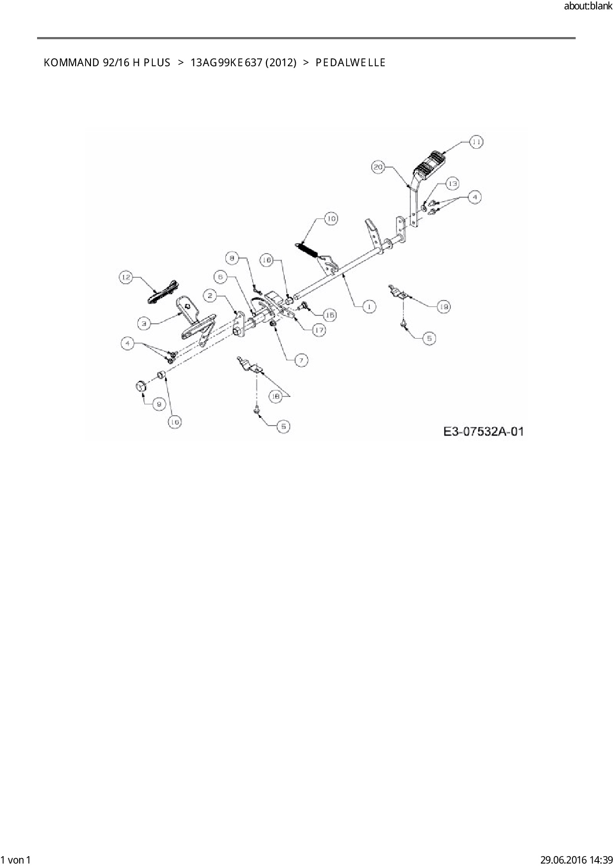 Ersatzteile für Rasentraktor EFCO Kommand 92/16 H Plus aus der Zeichnung Pedalwelle:
