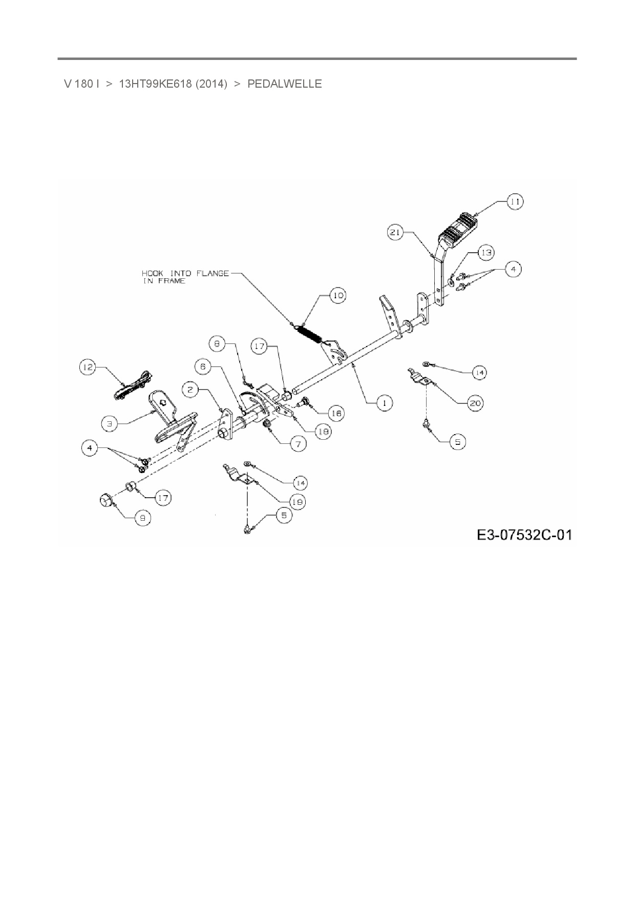 Ersatzteile für Rasentraktor Rasor V 180 I aus der Zeichnung Pedalwelle:
