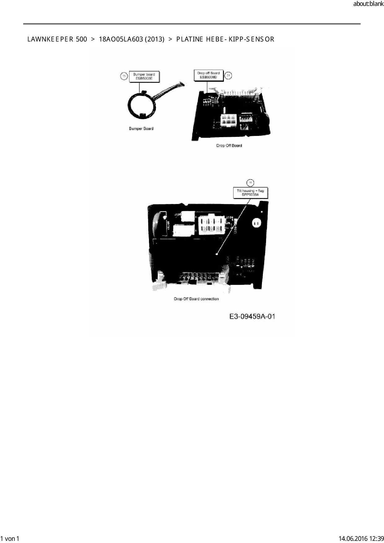 Ersatzteile für Mähroboter Cub Cadet Lawnkeeper 500 aus der Zeichnung Platine Hebe- Kipp-Sensor: