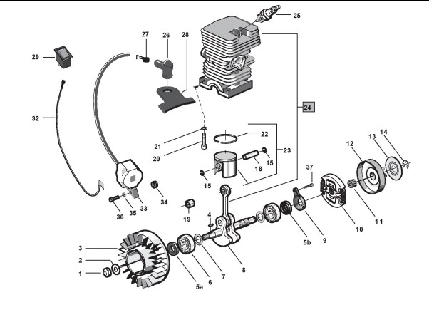 Hier finden Sie alle Ersatzteile von Castelgarden Benzin Kettensägen XC 36 (222614003/04) ab 2007 aus der Zeichnung Pleuelwerk und Zylinder:
