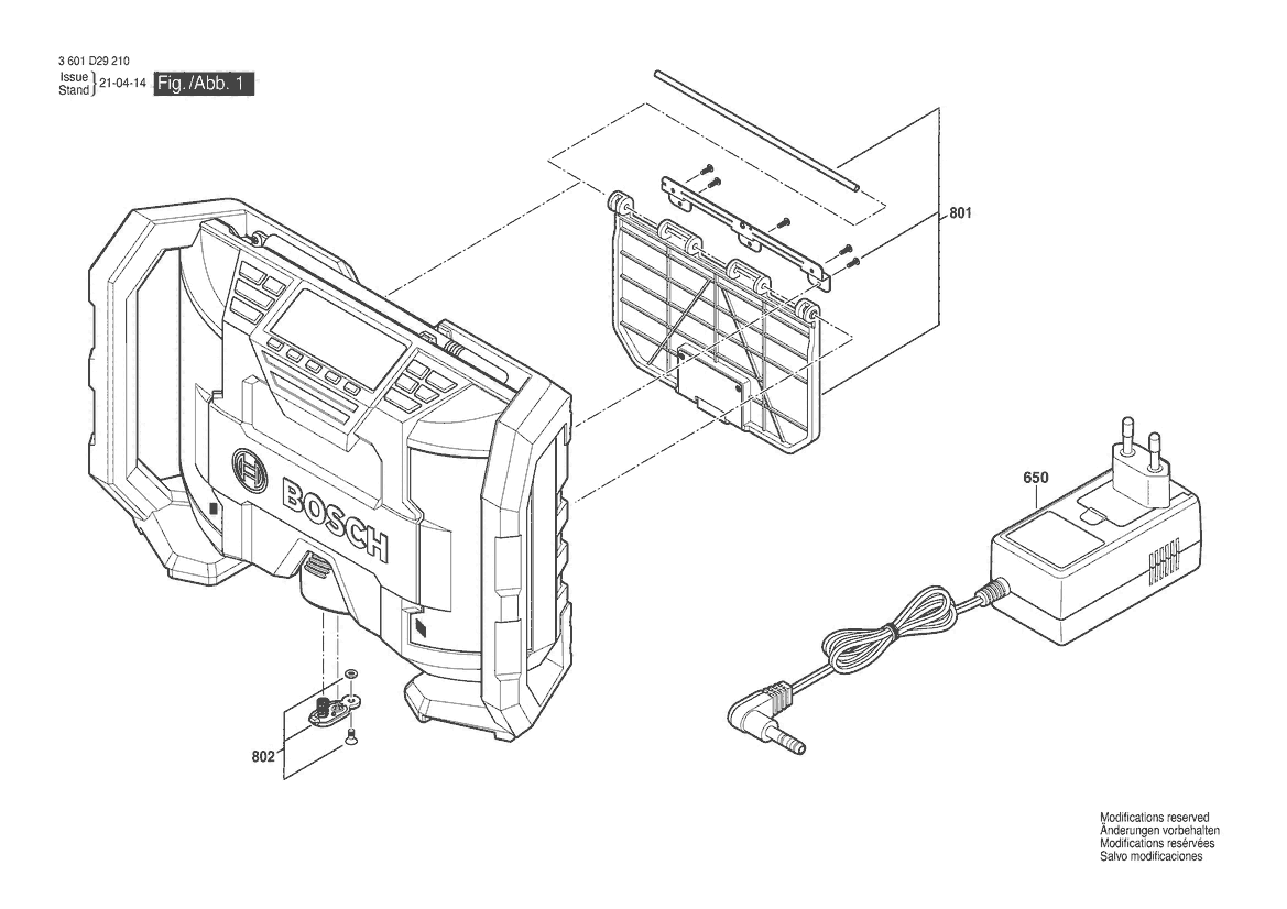 Zeichnung Sollten Sie Fragen zu einem Ersatzteil vom Bosch Power-Radiobox PB120 | 061 - US (3 601 D29 210) haben, können Sie uns gerne eine E-Mail (mit einem Foto vom Typenschild Ihres Gerätes) schreiben oder eine Ersatzteilanfrage stellen.