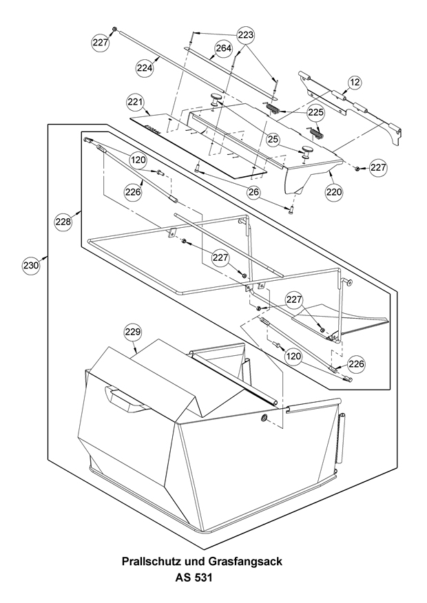 Hier finden Sie alle Ersatzteile von AS-Motor Profi-Rasenmäher AS 531 2T MK B und AS 531/2T B MK-Kat VarioPro ab FNr. 026313110001 aus dem Zeichnungsblatt Prallschutz und Grasfangsack: