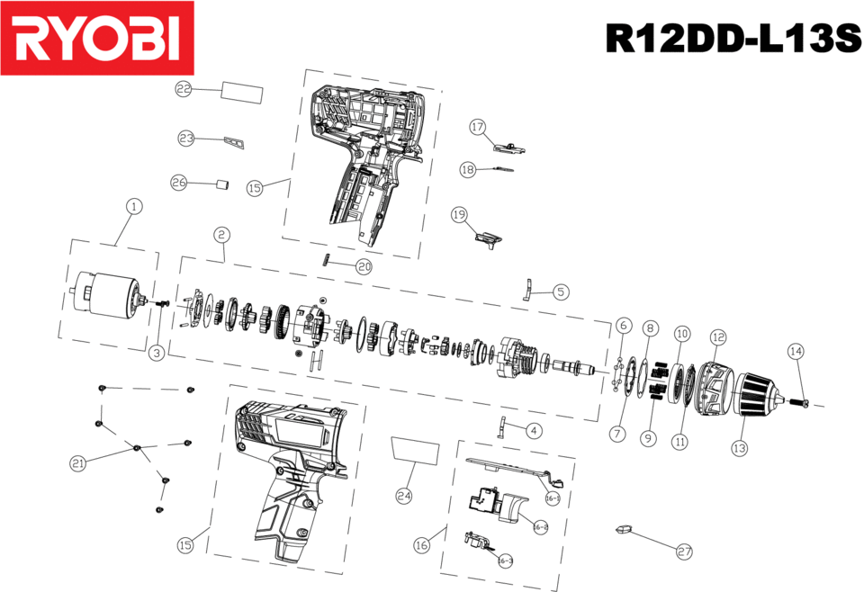 Ersatzteile für Bohrschrauber R12DD-LL13S (4000444027 5133001802) von Ryobi: