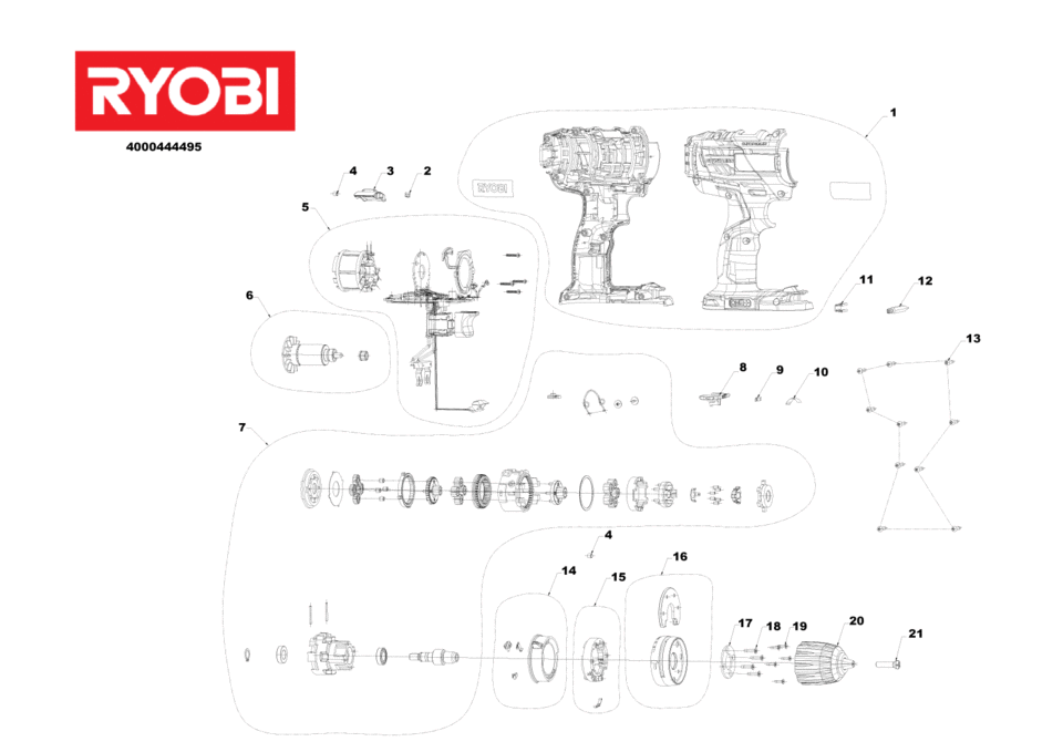 Ersatzteile für Bohrschrauber R18DDBL-LL15S (4000444495 5133002532) von Ryobi: