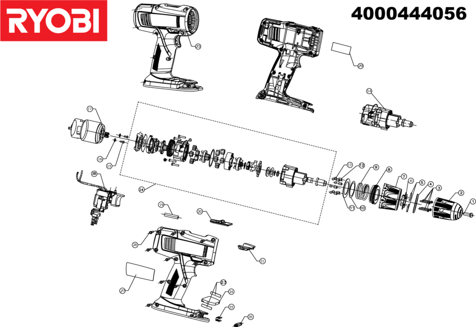 Ersatzteile für Bohrschrauber R18DDP-L13G (4000444056 5133002402) von Ryobi:
