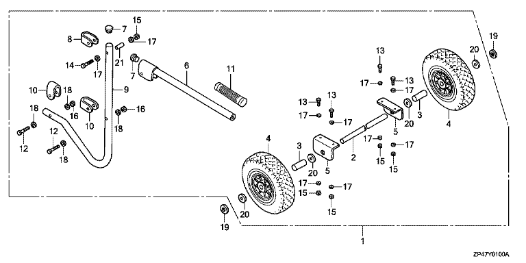 Ersatzteile für Honda Stromerzeuger ECT6500P2 GVWT (GVWT) Baugruppe RADSATZ (1)