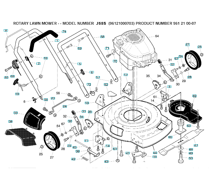 Ersatzteile für Husqvarna Rasenmäher private Nutzung J55S ( 96121000703, 2008-07 ) RAHMEN & MOTOR: