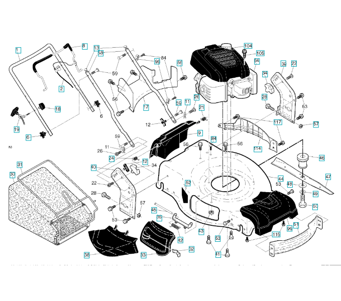 Ersatzteile für Husqvarna Rasenmäher private Nutzung LC356AWD ( 96141029204, 2016-07 ) RAHMEN & MOTOR: