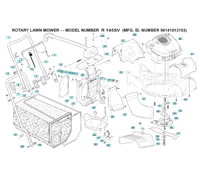 Ersatzteile für Husqvarna Rasenmäher private Nutzung R145SV ( 96141013104, 2009-10 ) RAHMEN & MOTOR: