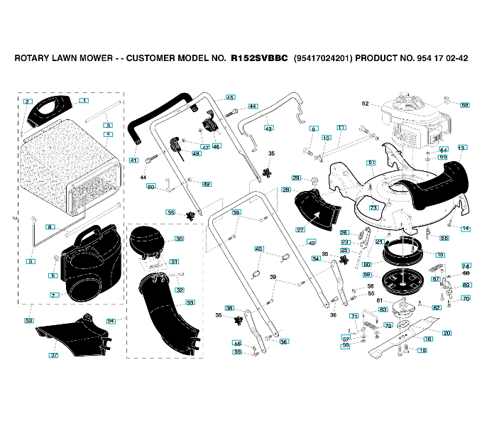 Zeichnung für Husqvarna Rasenmäher private Nutzung R152SVBBC ( 95417024201, 954170242, 2005-02 ) RAHMEN & MOTOR