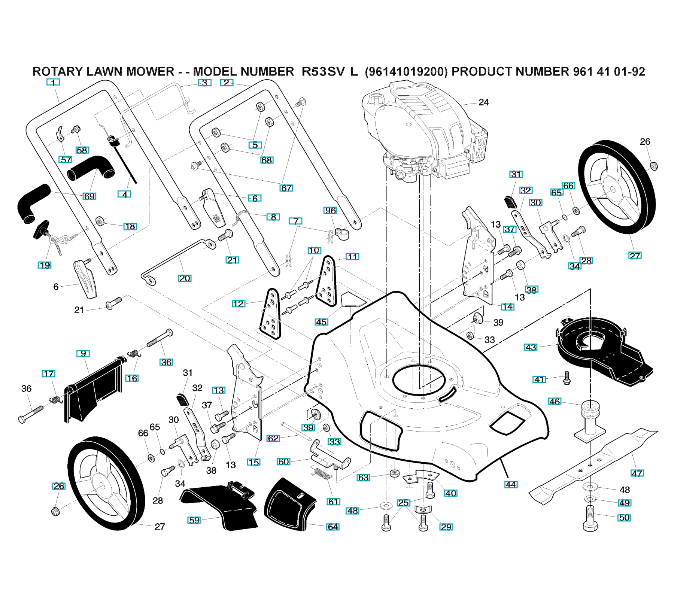 Zeichnung für Husqvarna Rasenmäher private Nutzung R53SVL ( 96141019200, 2008-02 ) RAHMEN & MOTOR