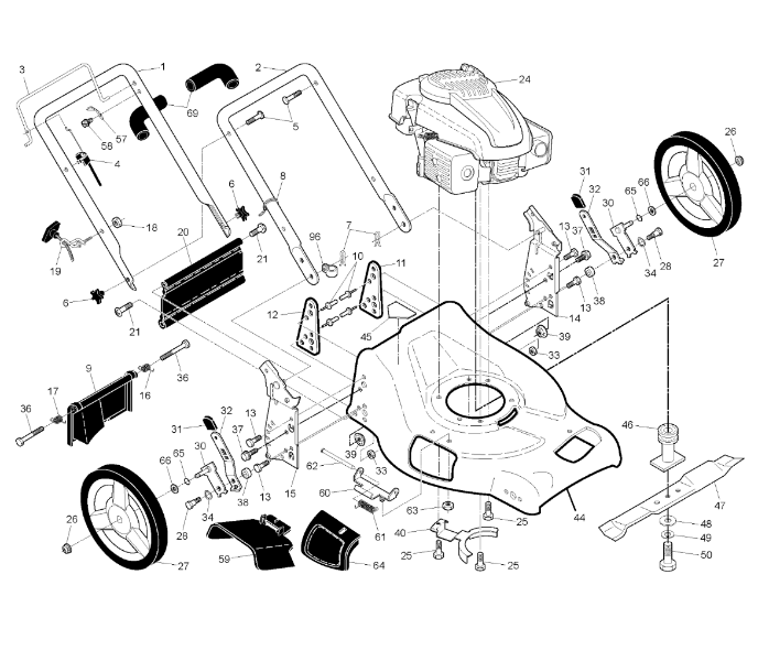 Zeichnung für Husqvarna Rasenmäher private Nutzung 7021 ( 374081, 2010-01 ) RAHMEN & MOTOR