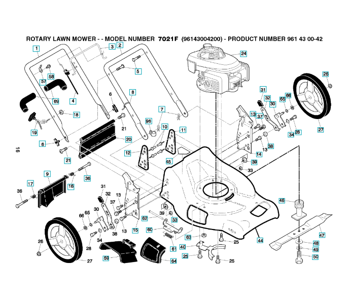 Folgende Ersatzteile für Husqvarna Rasenmäher private Nutzung 7021F ( 96143004200, 2009-01 ) RAHMEN können Sie hier bestellen:
