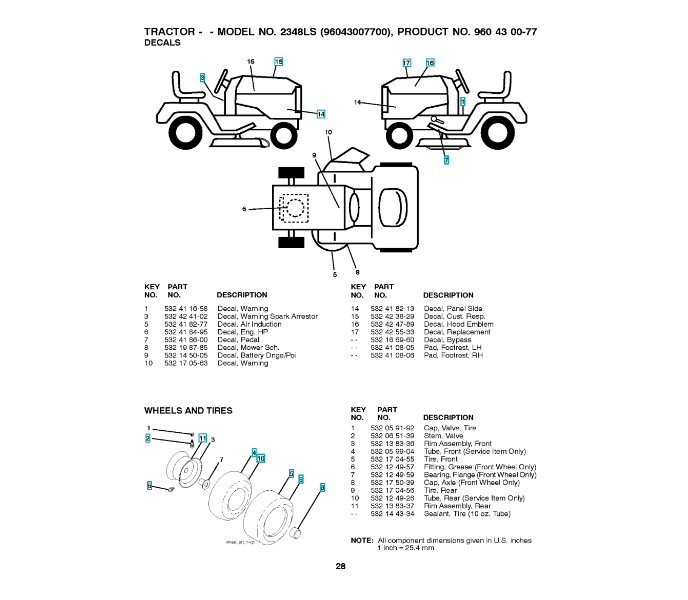 Ersatzteile für Husqvarna Gartentraktoren 2348 LS ( 96043007700, 2008-11 ) RÄDER & REIFEN: