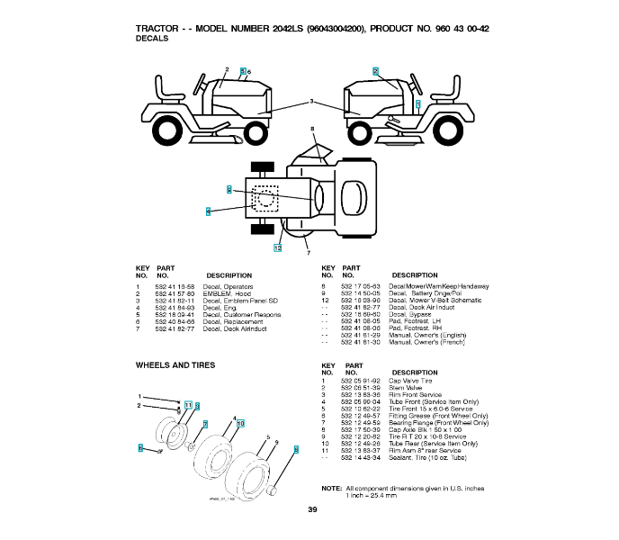 Ersatzteile für Husqvarna Gartentraktoren 2042 LS ( 96043004200, 2008-01 ) RÄDER & REIFEN: