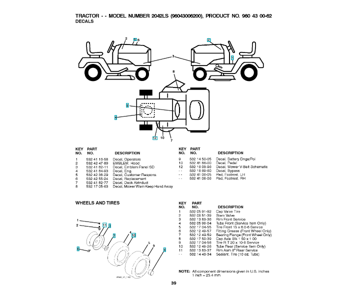 Ersatzteile für Husqvarna Gartentraktoren 2042 LS ( 96043006200, 2008-11 ) RÄDER & REIFEN: