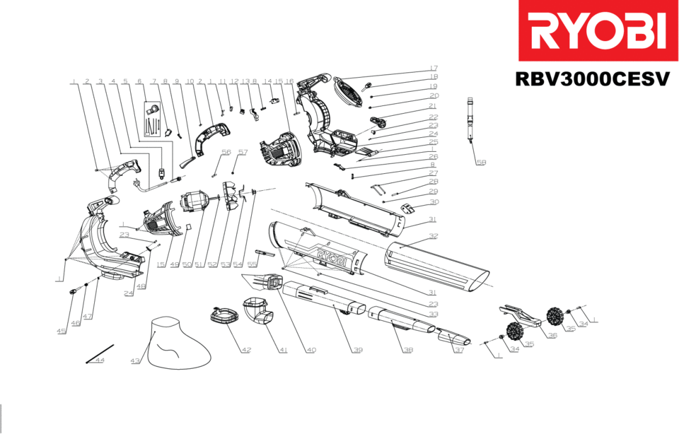 Ersatzteile für Blasgerät / Sauger RBV3000CESV (4000444216 5133002191) von Ryobi: