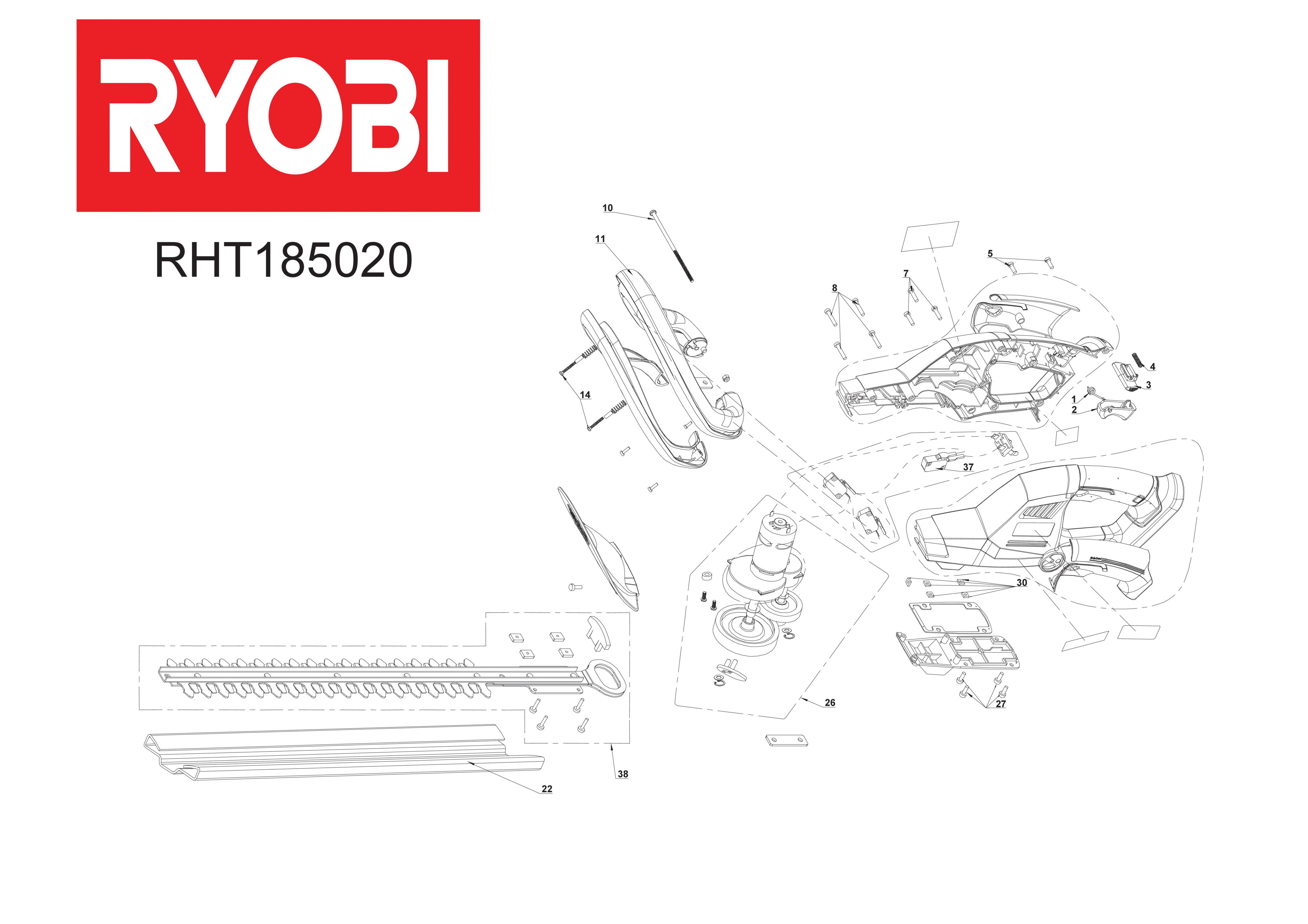 Folgende Ersatzteile für Ryobi Heckenschere RHT185020 (5133003394) können Sie hier bestellen: