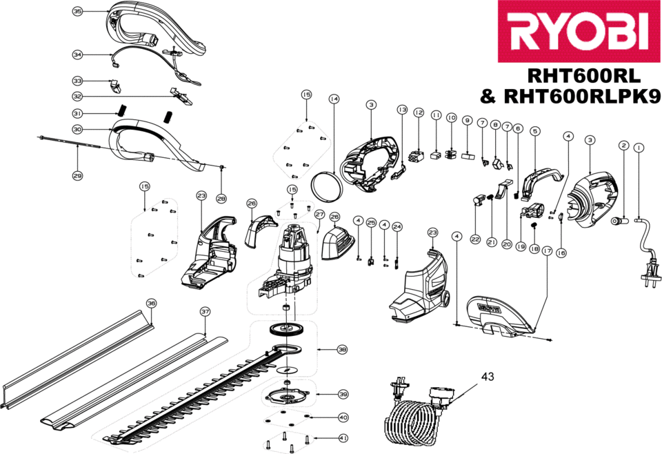 Ersatzteile für Heckenschere RHT600RL (51330012311 5133001231) von Ryobi: