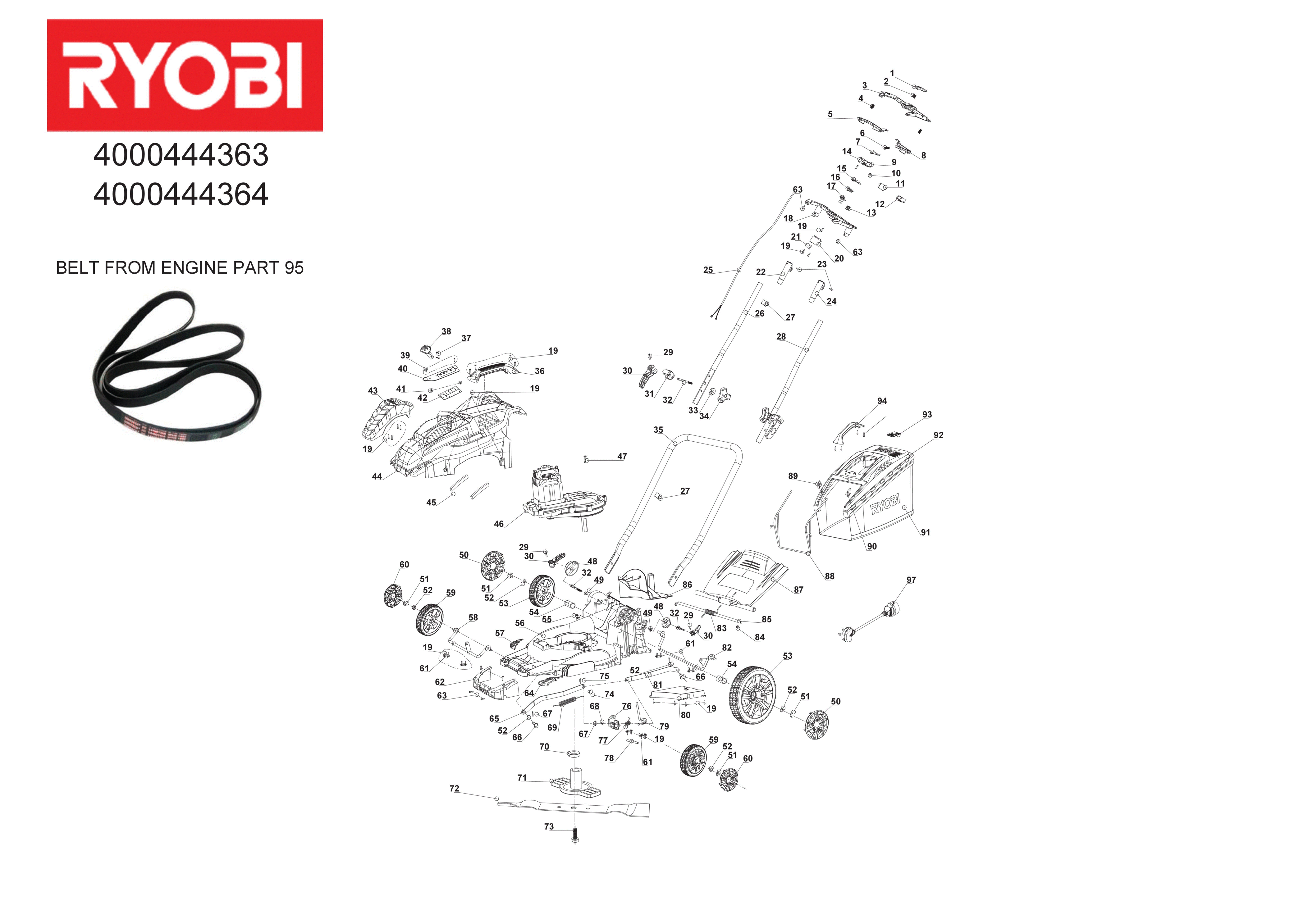 Ersatzteile für Rasenmäher RLM18E40H (4000444363 5133002347) von Ryobi: