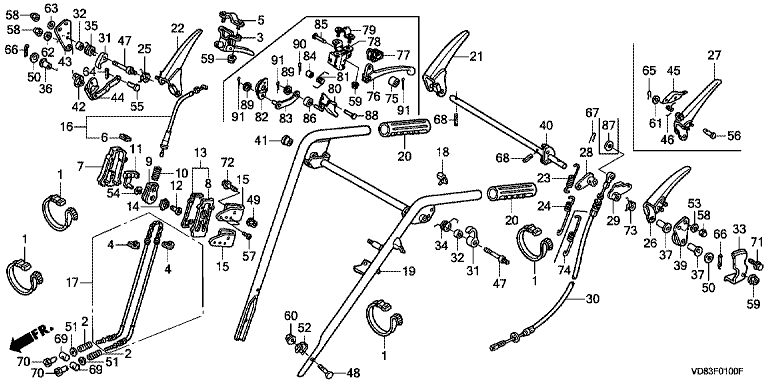 Ersatzteile für Honda Wiesenmäher UM2460 F (F/A) Baugruppe ROHRGRIFF