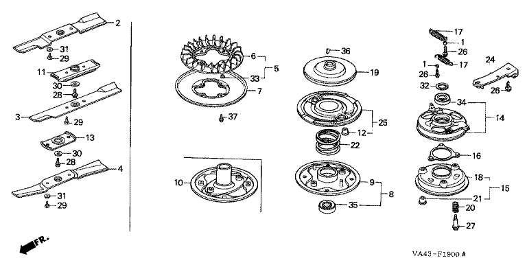 Ersatzteile für Honda Rasenmäher HRA214 PE/B Baugruppe ROTATIONSMESSER
