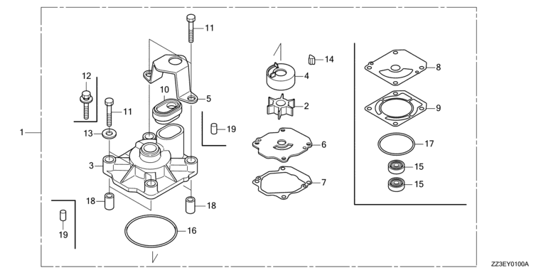 Ersatzteile für Honda Außenbordmotoren BFP60AK1 XRTL (XRTL) Baugruppe ROTORPUMPENSATZ