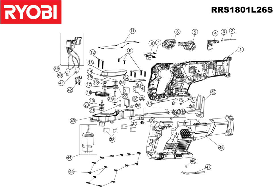 Ersatzteile für Säbelsäge RRS1801M (4000444054 5133001162) von Ryobi: