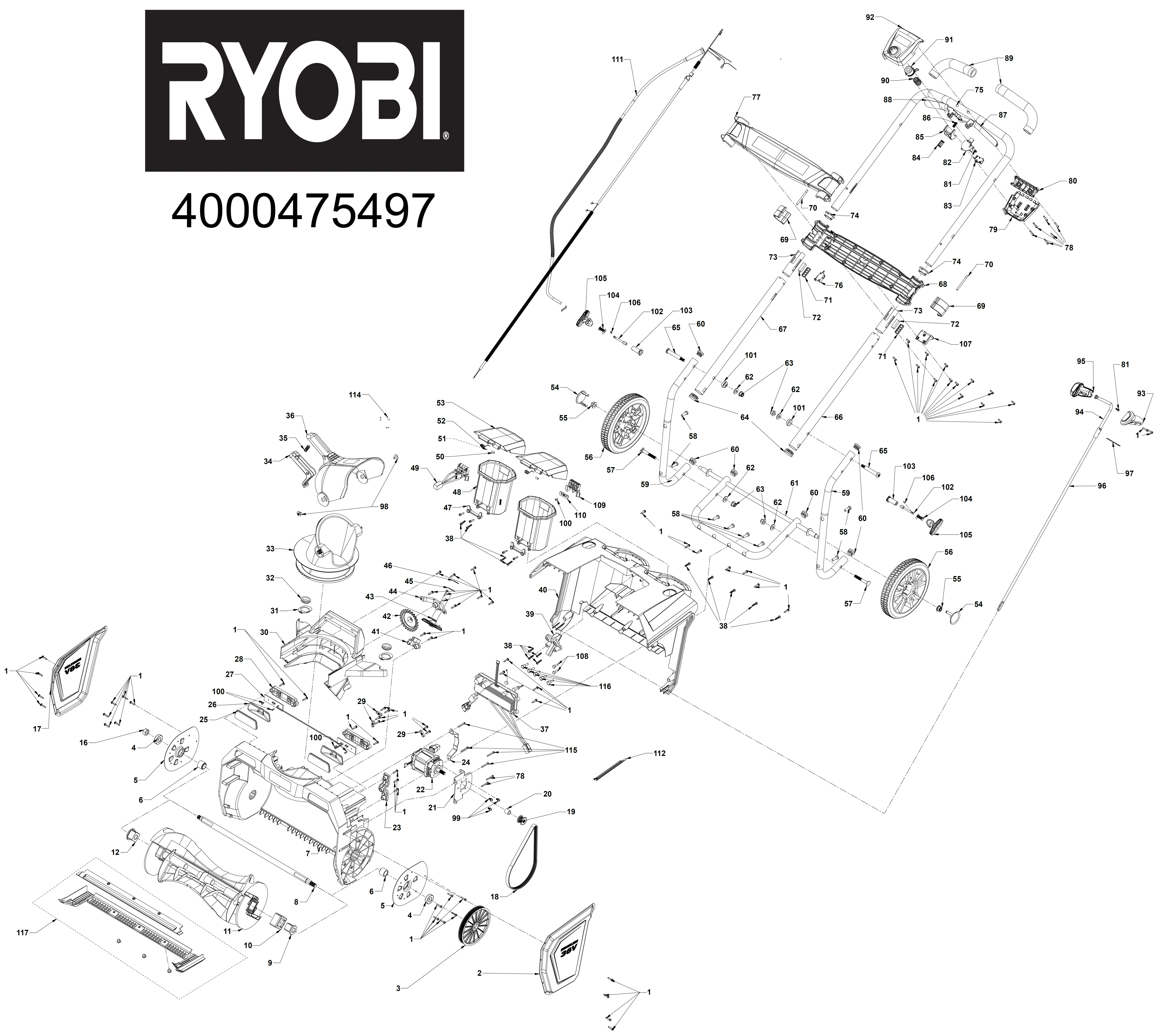 Zeichnung Sollten Sie Fragen zu einem Ersatzteil vom Ryobi RST36B51 - Freizeit XX96 4000475497 5133002520 haben, können Sie uns gerne eine E-Mail (mit einem Foto vom Typenschild Ihres Gerätes) schreiben oder eine Ersatzteilanfrage stellen.
