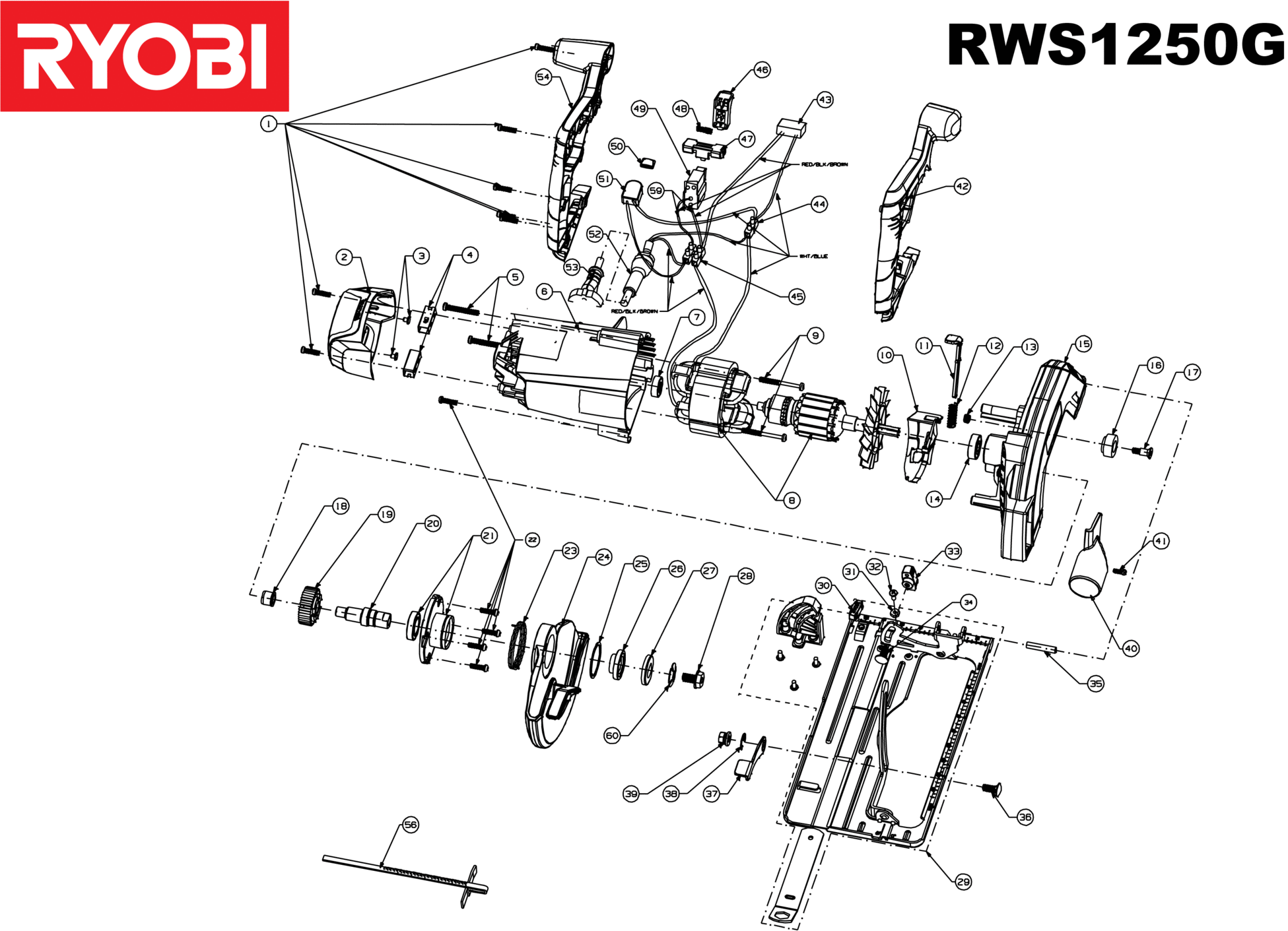 Ersatzteile für Ryobi RWS1250-G - Sägen XX96 51330017851 5133001785