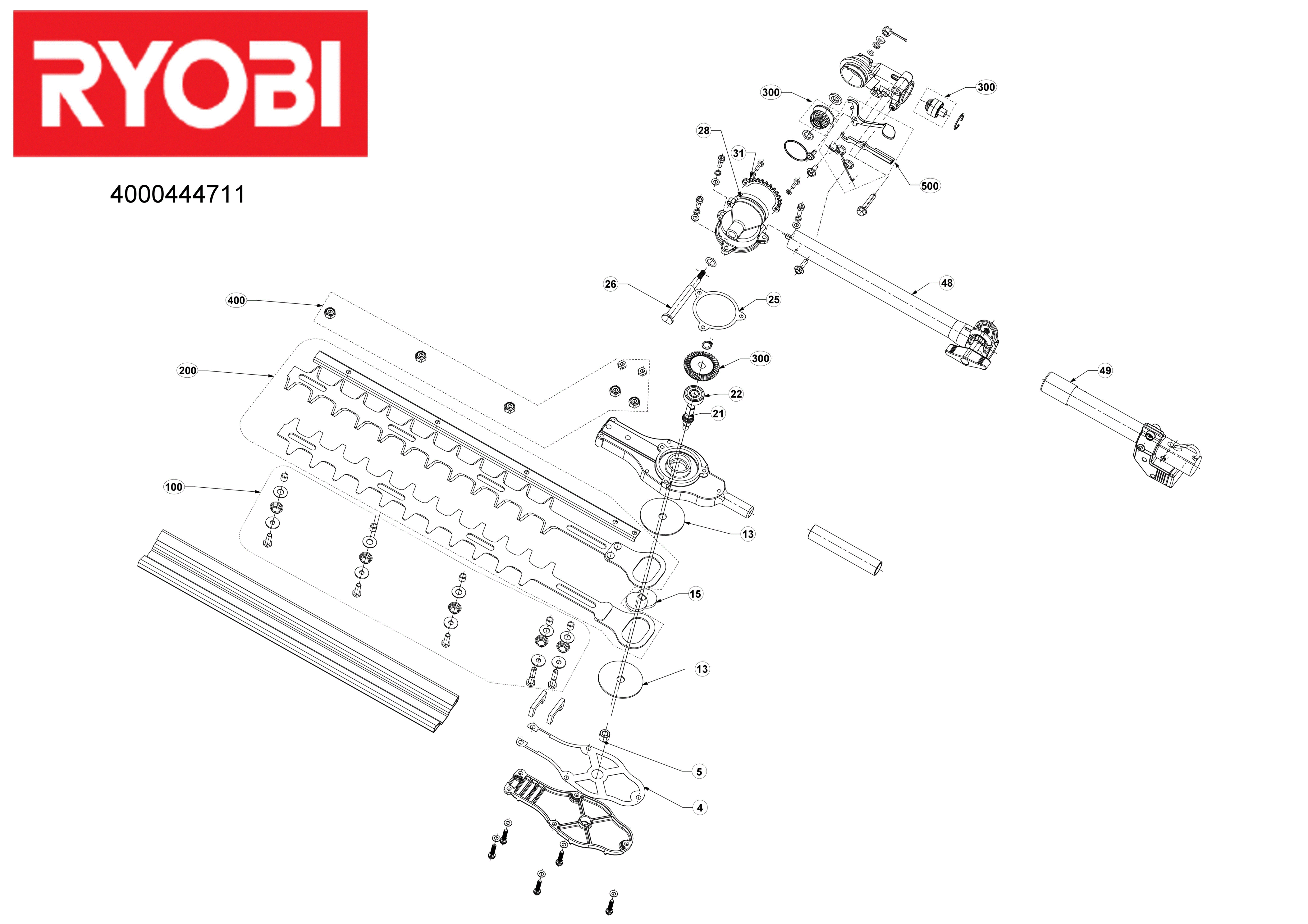 Ersatzteile für Heckenschere RXAHT01 (4000444711 5132002796) von Ryobi: