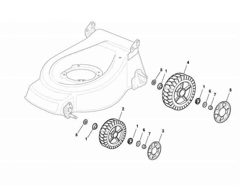 Hier finden Sie alle Ersatzteile von Castelgarden Benzinrasenmäher ab 2006 SPL 534 (ID 294531023/05) aus der Zeichnung Rad und Radkappe: