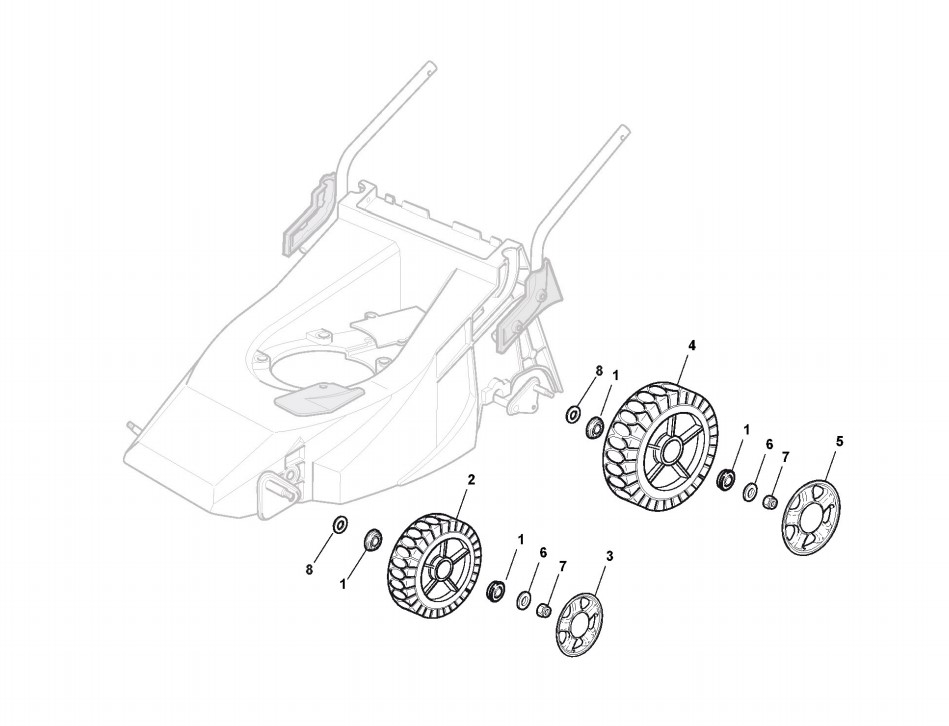 Hier finden Sie alle Ersatzteile von Castelgarden Benzinrasenmäher ab 2005 T 484 TR (ID 296506023/SP5) aus der Zeichnung Rad und Radkappe: