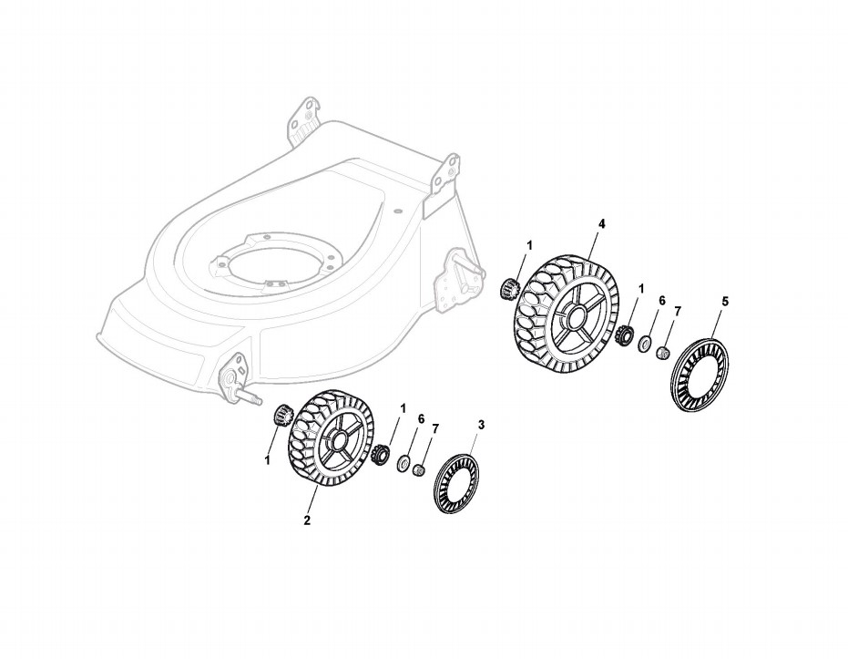 Hier finden Sie alle Ersatzteile von Castelgarden Benzinrasenmäher ab 2006 W 484 - B (ID 294804123/MTF) aus der Zeichnung Rad und Radkappe: