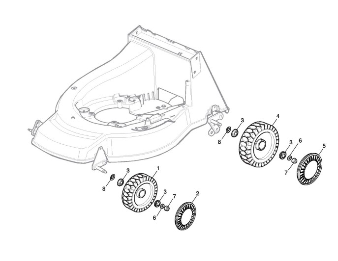 Hier finden Sie alle Ersatzteile von Castelgarden Benzinrasenmäher ab 2005 XA 55 MBS (ID 292143823/SP4) aus der Zeichnung Rad und Radkappe: