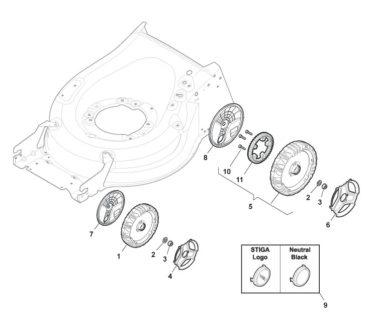 Hier finden Sie alle Ersatzteile von Castelgarden Benzinrasenmäher ab 2020 XM 55 S (ID 294562843/C20) aus der Zeichnung Rad und Radkappe: