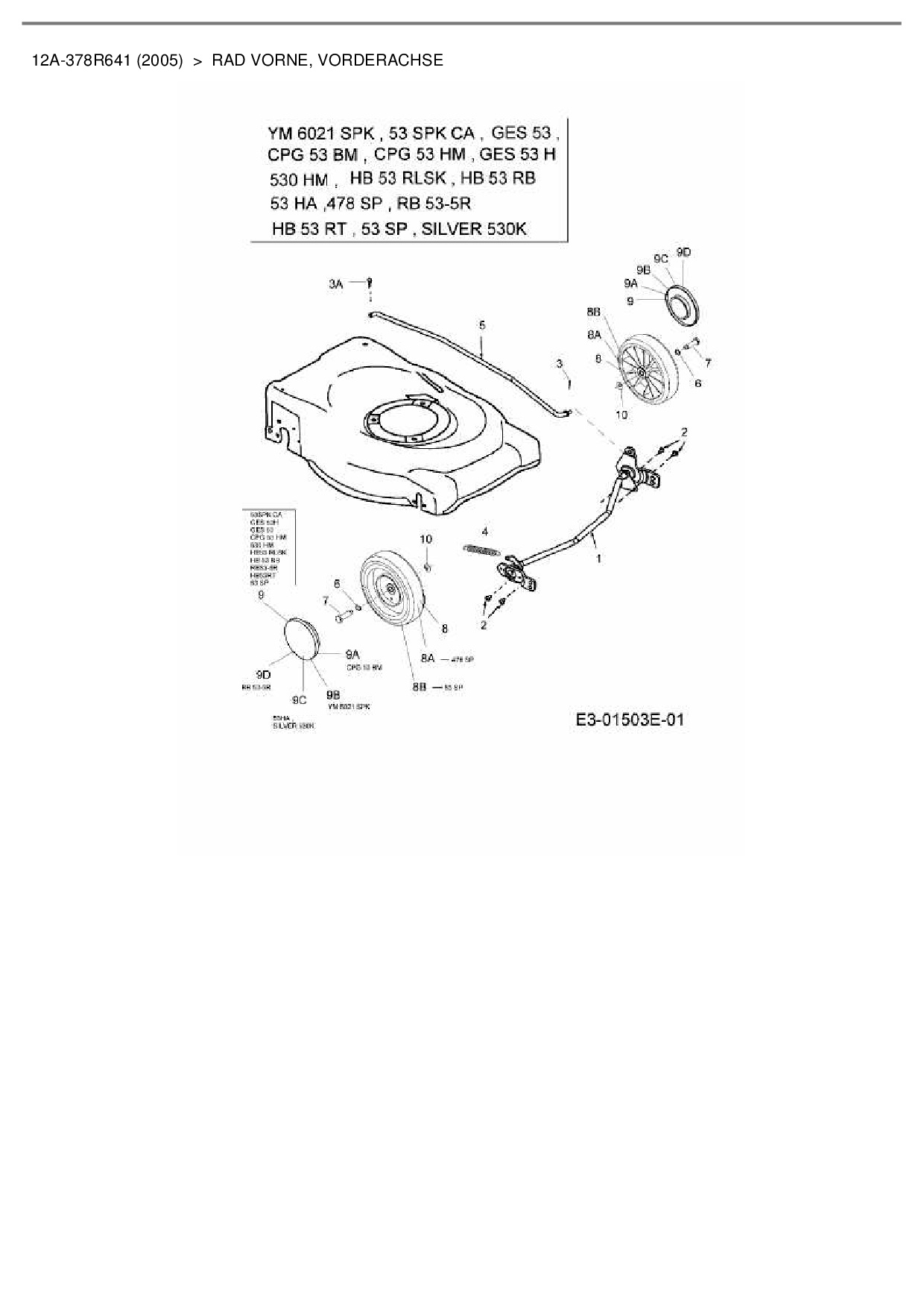 Ersatzteile für Motormäher mit Antrieb Central Park CPG 53 BM aus der Zeichnung Rad vorne, Vorderachse: