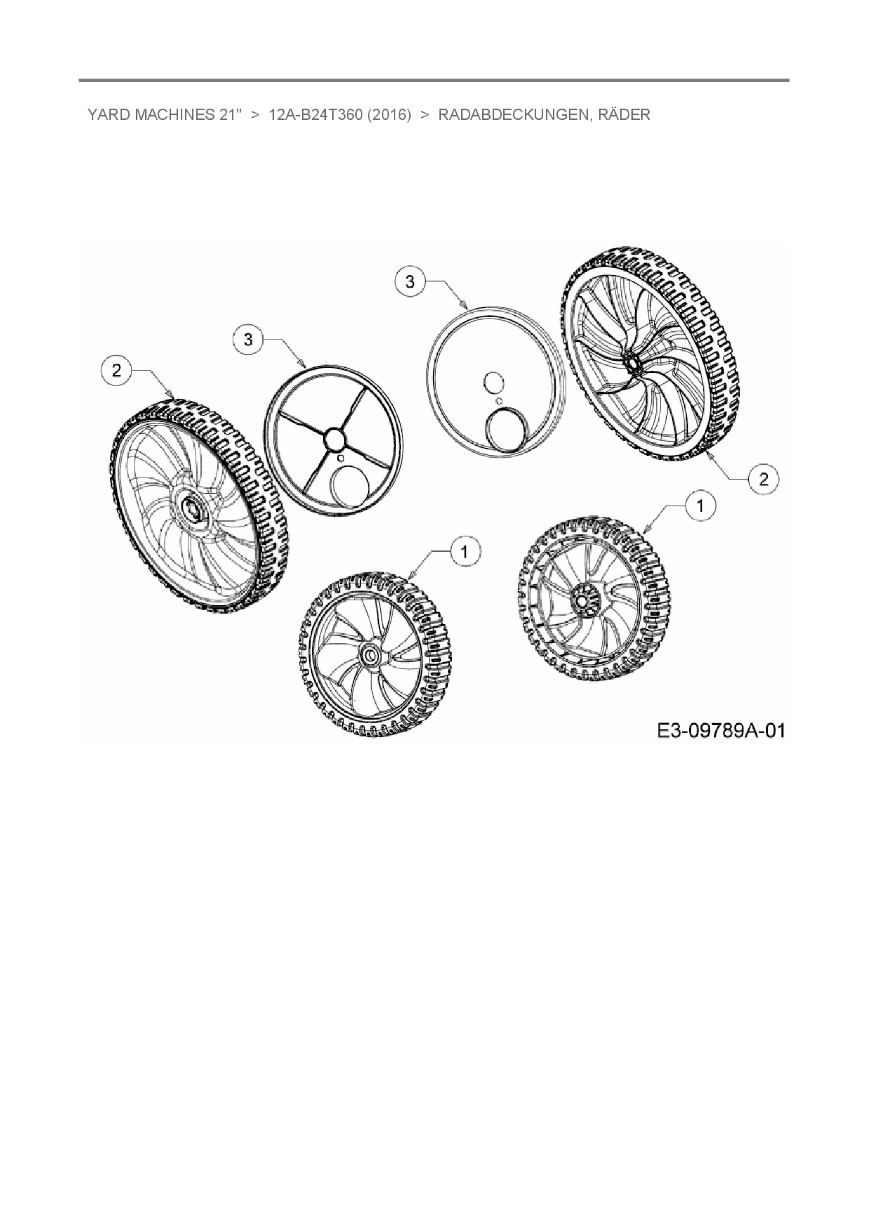 Download Ersatzteil-Zeichnung MTD Yard Machines 21" Zeichnung Radabdeckungen, Räder (PDF-Format)
