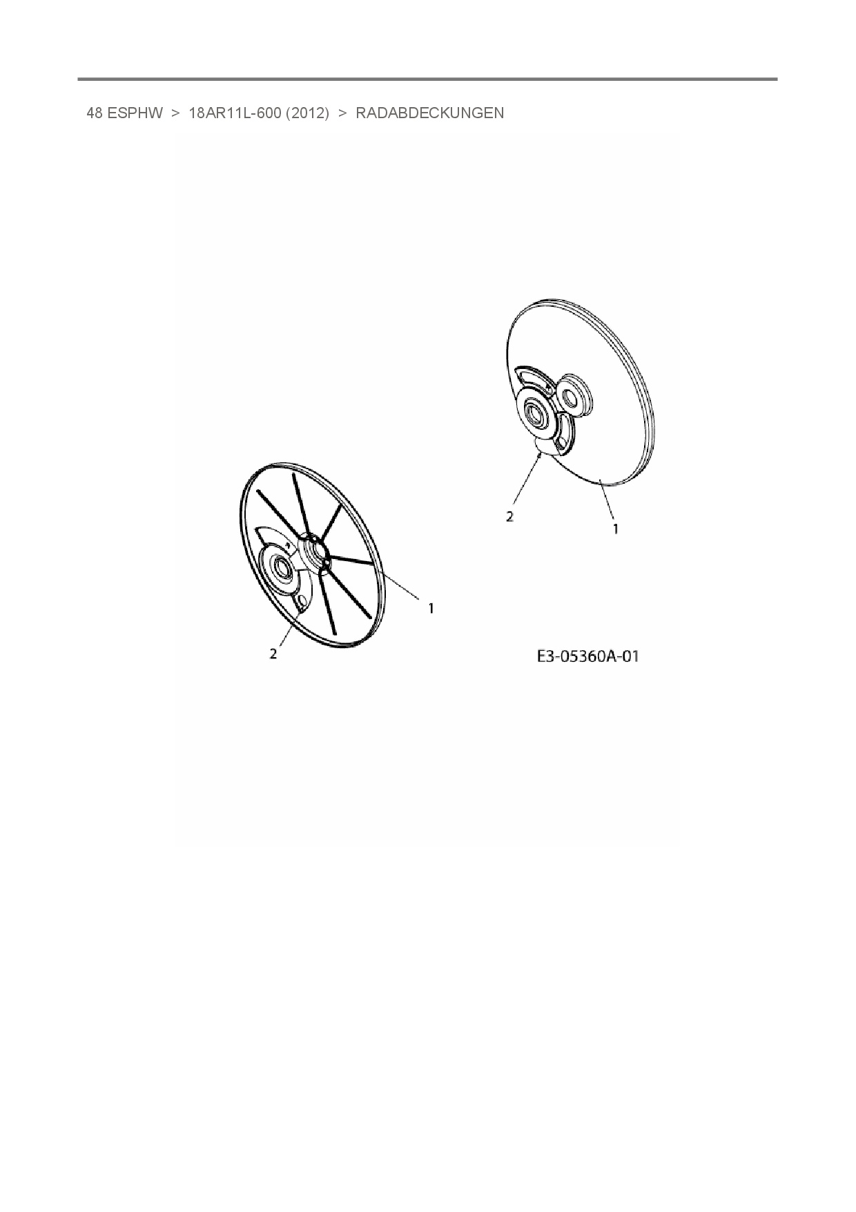 Ersatzteile für Elektromäher mit Antrieb MTD 48 ESPHW aus der Zeichnung Radabdeckungen: