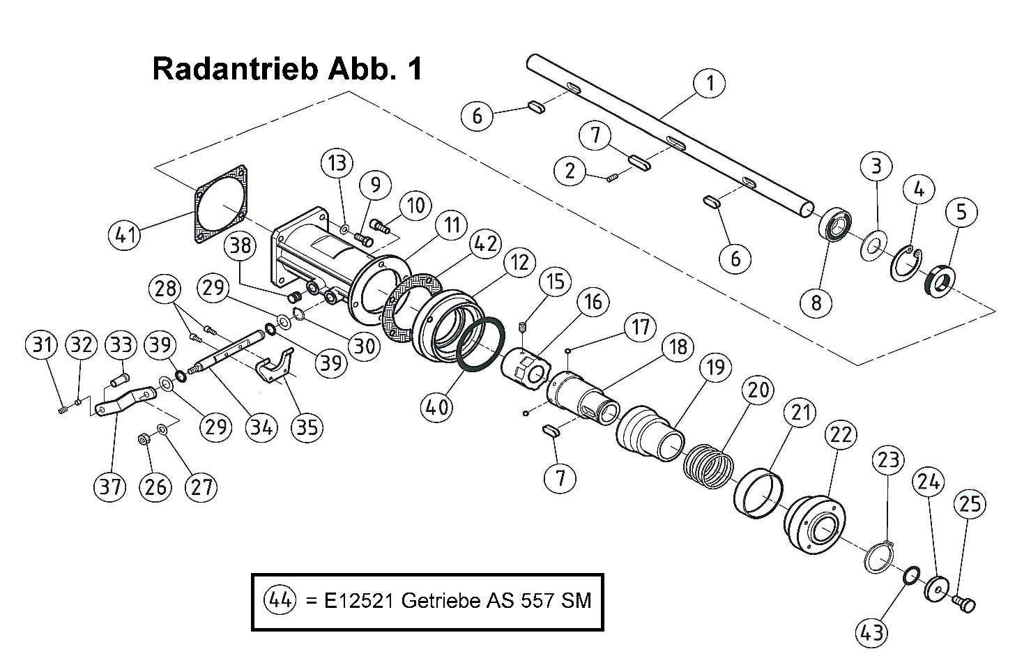 Hier finden Sie alle Ersatzteile von AS-Motor Schlegelmäher AS 557 SM ab FNr. 025214070001 aus dem Zeichnungsblatt Radantrieb Abb.1:
